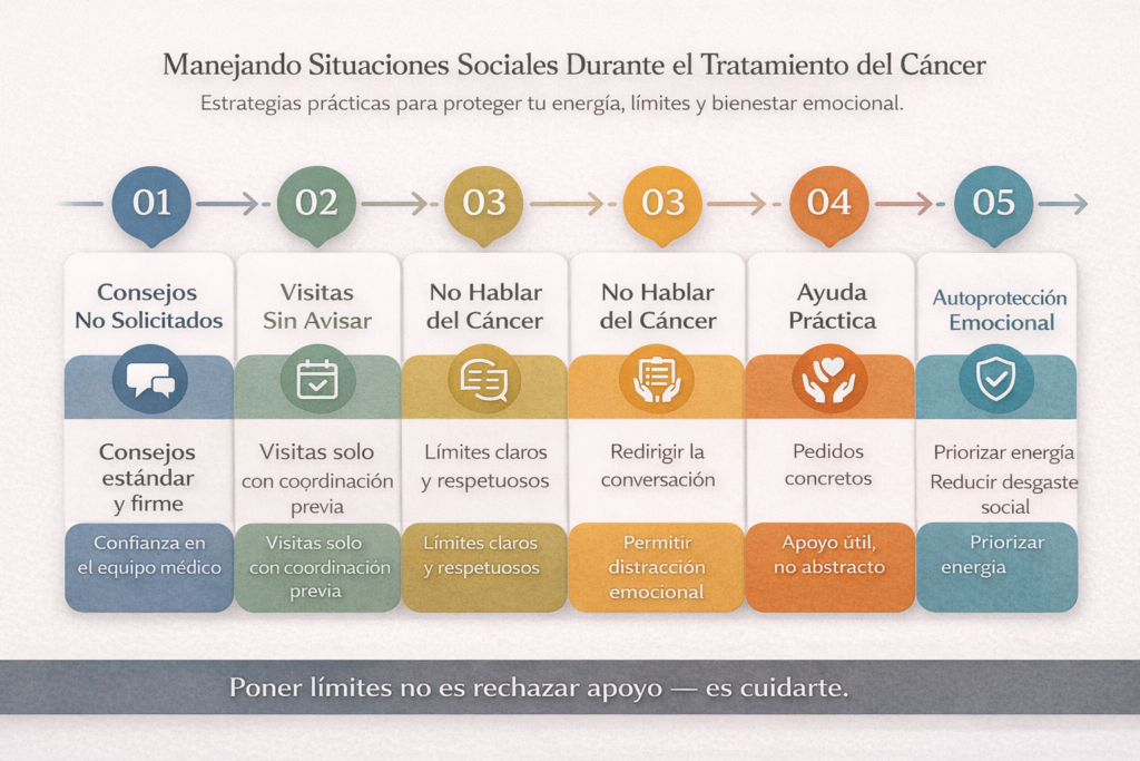 Tu viaje con el cáncer es tuyo. Tú decides quién te acompaña en ese viaje, en qué capacidad, y en qué términos. Ese control sobre tu vida social durante uno de los períodos más difíciles que enfrentarás no es solo tu derecho, es tu necesidad para mantener tu salud mental y emocional mientras luchas por tu salud física.